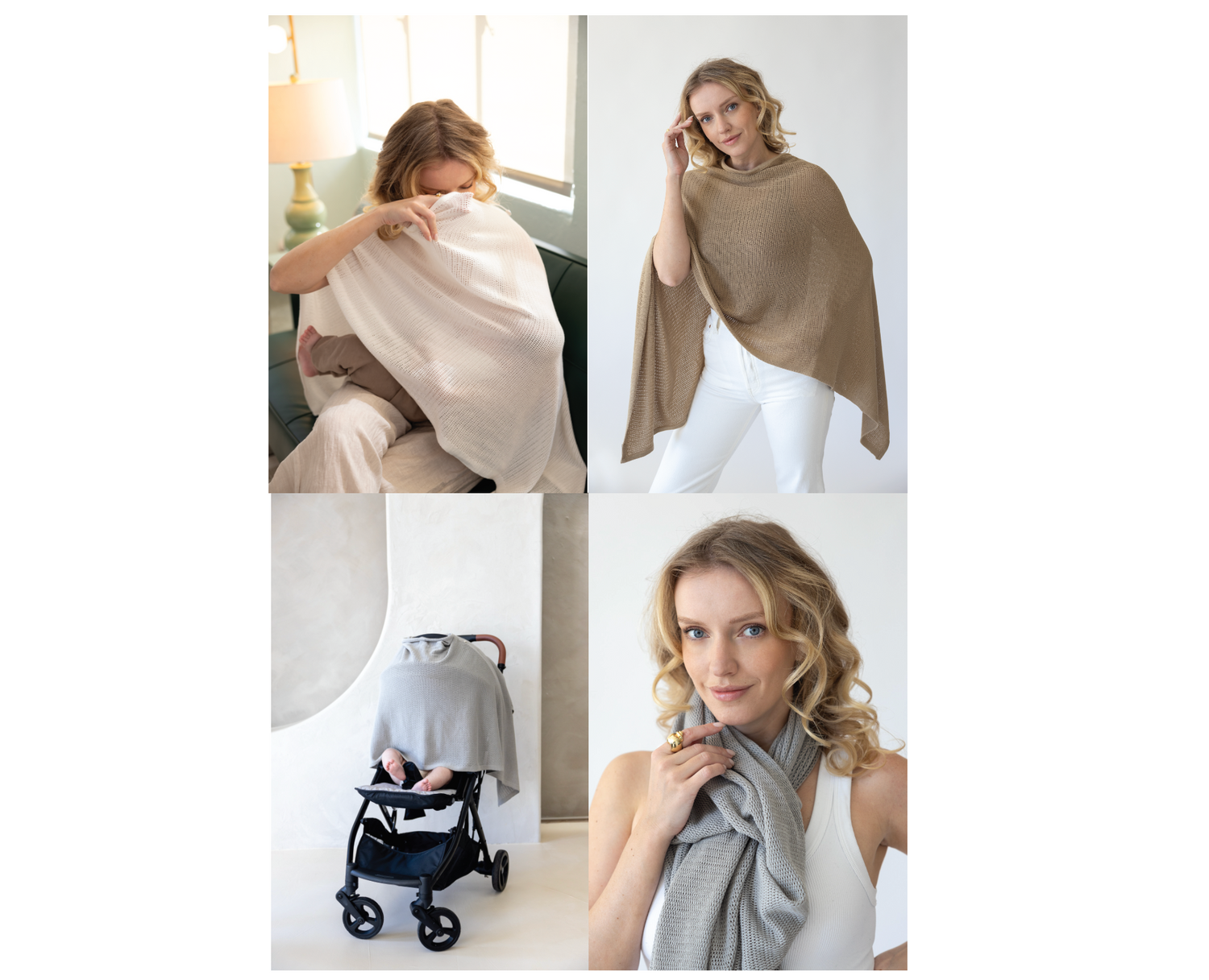 Our adjustable elastic drawcord neckline allows for the perfect fit to stay put on the crown of mamas head for hands free nursing.