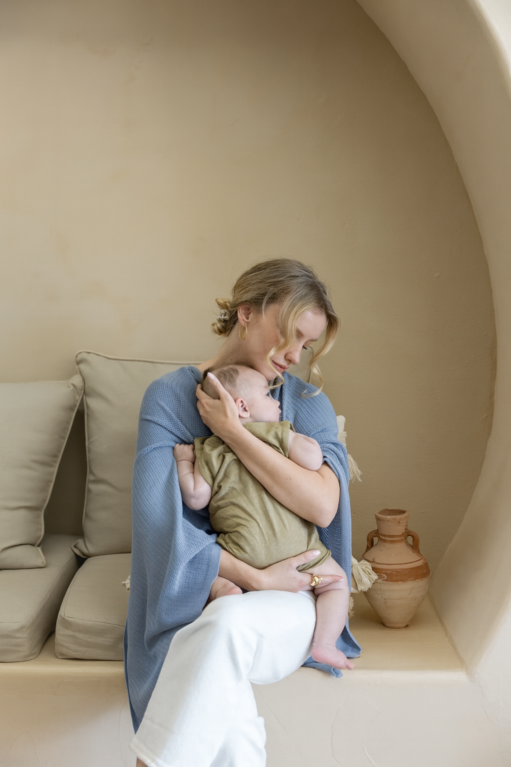 Our Sol Cocoon presents a modern and functional twist on a classic nursing cover & shawl. Our one of its kind adjustable neck closure allows for hands free nursing. Crafted from our signature knit organic cotton and rayon blend, the Sol Cocoon stands for quality and versatility, without compromising style or sustainability.